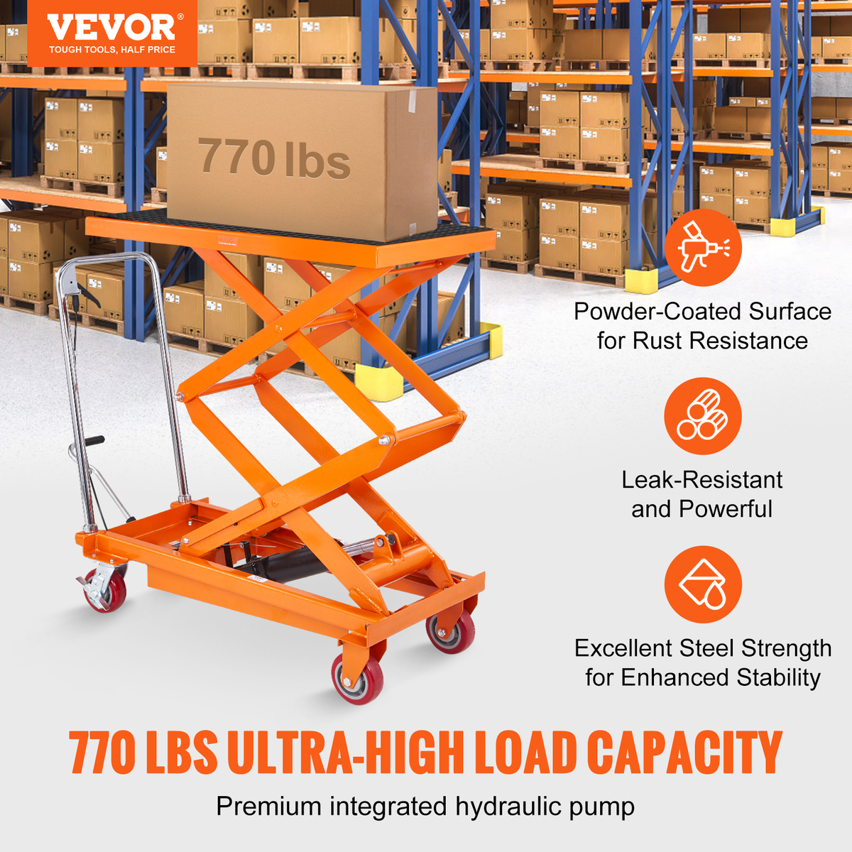 - VEVOR Hydraulic Lift Table Cart, 770lbs Capacity 59 inch Lifting Height, Orange