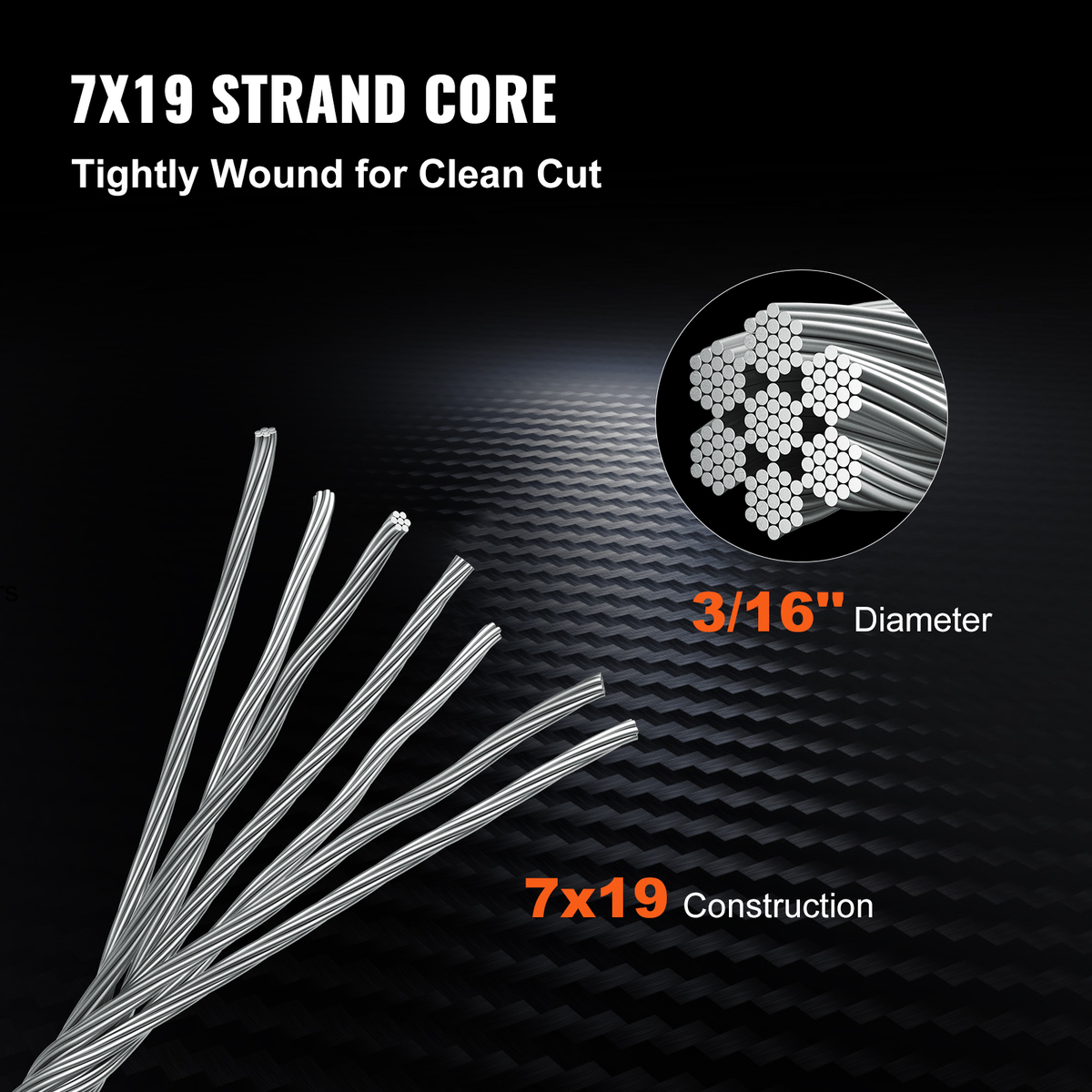- VEVOR T304 Stainless Steel Cable 3/16 " 7 x 19 Strands Winch Cable 500 FT