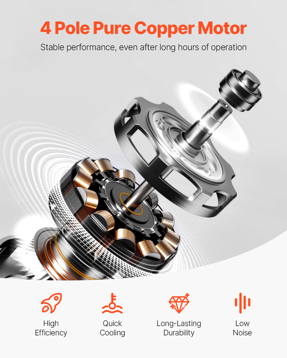 Stable, Reliable Operation: Driven by a high-performance 4-stage pure copper motor, this air conditioning vacuum pump offers long-lasting power and efficiency. The built-in cooling fan avoids overheating, ensuring consistent, reliable performance even during extended use.