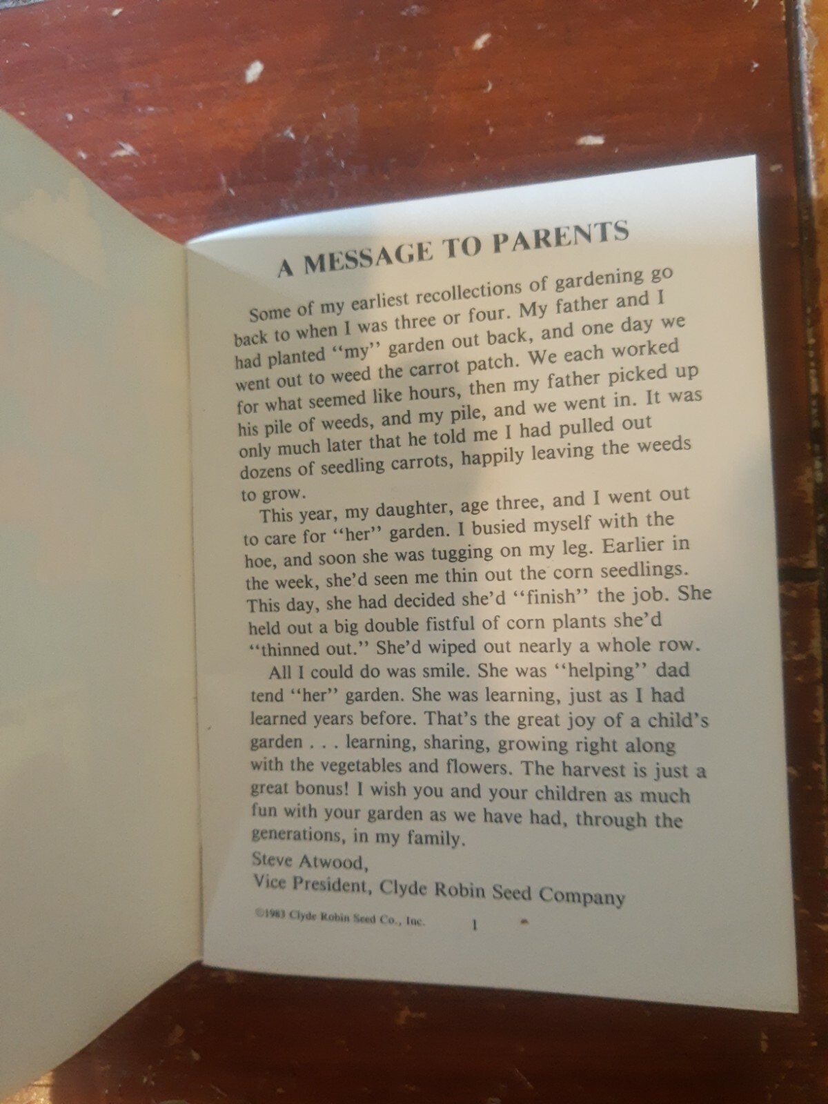 VINTAGE 1983 A Child's Garden Primer Book Booklet Clyde Robin Seeds