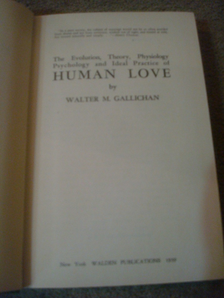 - VINTAGE "Human Love" Walter Gallichan 1939 The Evolution and Psychology Sex