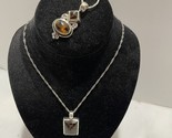 VINTAGE LOT OF 3pc Brown Tiger eye stone Sliver Necklace & Rarrings