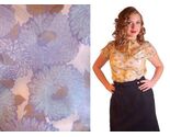 VTG 1950s Sheer Nylon Blouse Blue Floral Pinup Secretary Top Bust Sz S/M