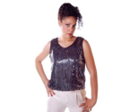 - VTG 1980s Opening Night Black Silk Sequin Tank Top Glam Shell S