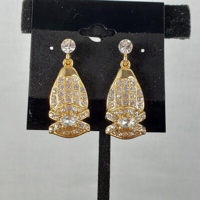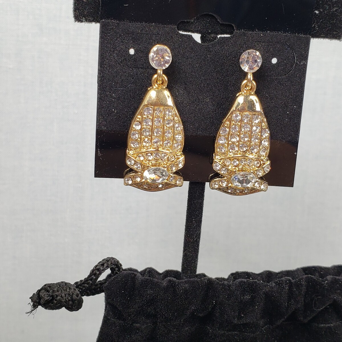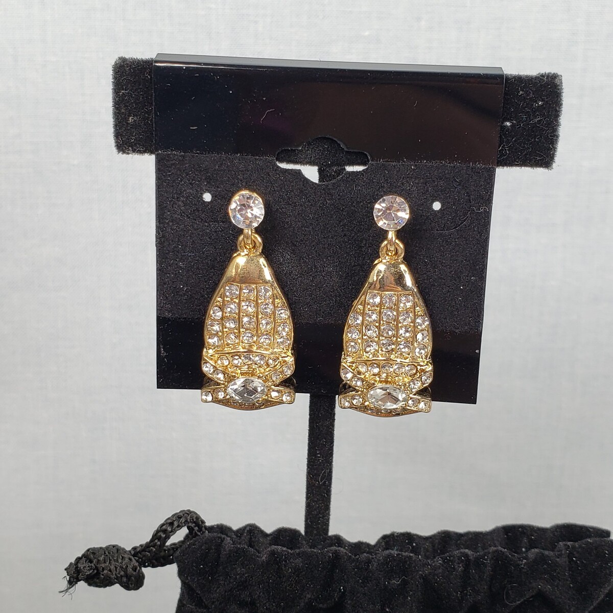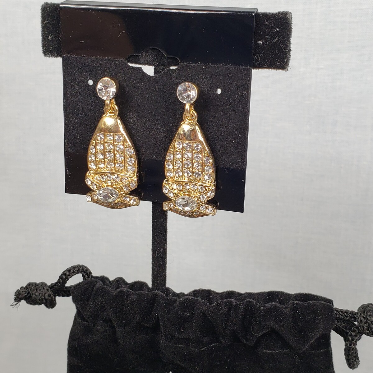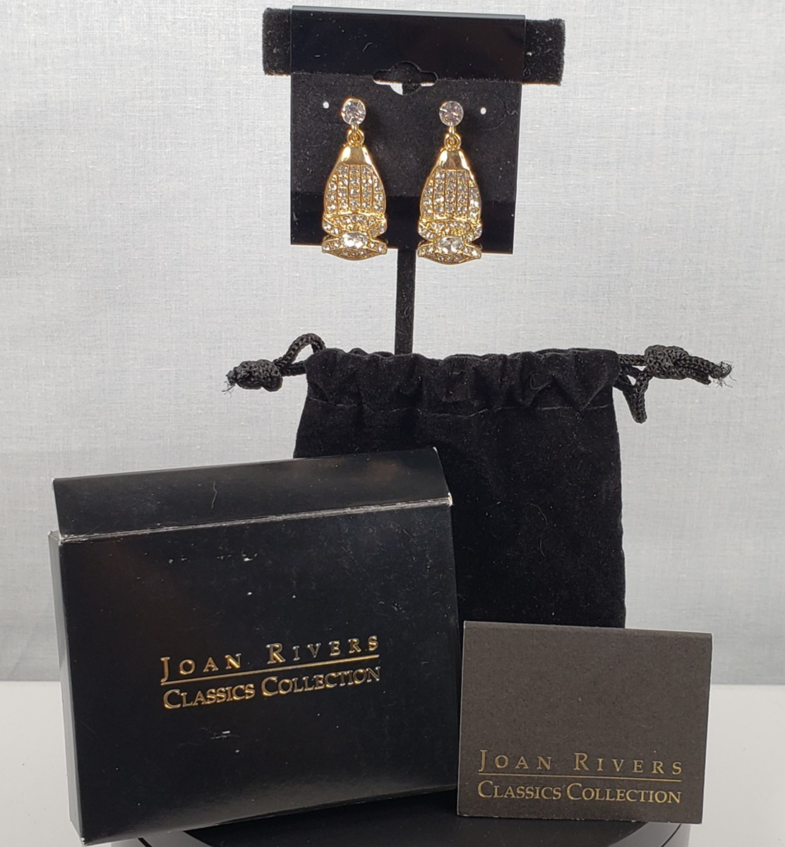 Vintage 1990?s Joan Rivers Crystal Gold Tone Beanie Cap Nome Pave Stones Post Dangle Earrings