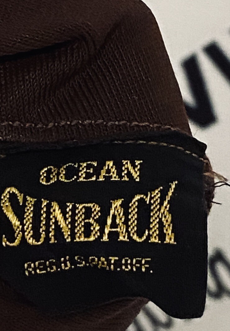 The Ocean Sunback label was one of the premier makers of 1930s women?s swimwear, known for bold lace-up styling, built-in modesty panties, and pleated skirts. Their suits reflected the shift from heavy wool to lighter fabrics, while still offering coverage. Surviving examples are highly collectible as they represent the glamour of seaside style in the pre-war era.