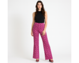 Vintage 1970s polyester bell bottom flare pants in a super mod purple diamond print outlined in red on a lavender ground. Women?s size 14. Pull-on style with elastic waist and light stretch in the fabric. Deadstock ? never worn, still with original tagger attached.