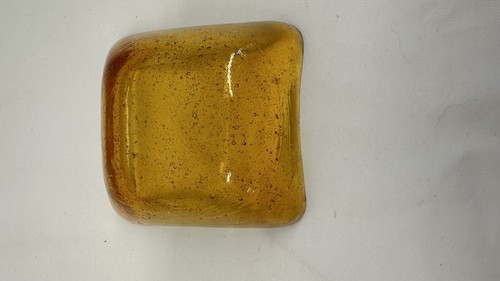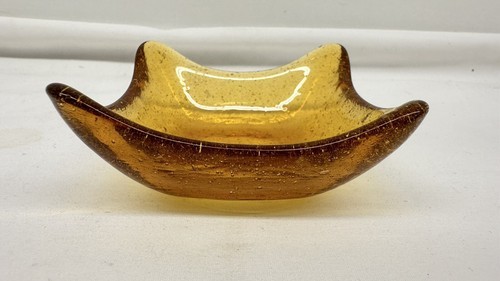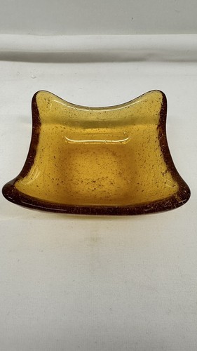 This cute and unique candle holder/trinket dish is a must-have for any collector or lover of decorative items. Made of high-quality amber glass, this piece features charming bubbles that rise to the surface as the candlelight warms the room. The dish is perfect for holding small jewelry items or trinkets, and the candle holder allows for a warm and cozy atmosphere in any room.