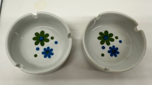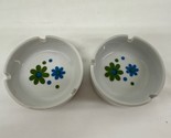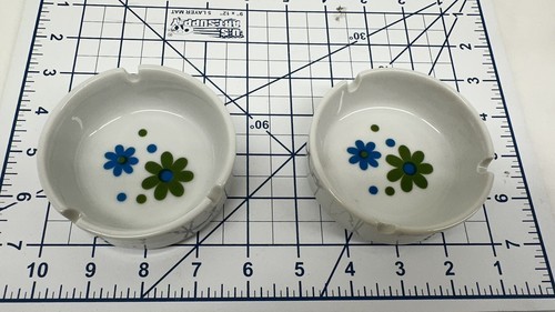 - VTG Ash Tray Blue/Green Daisy Flower Power MCM Round Porcelain Lot Of 2