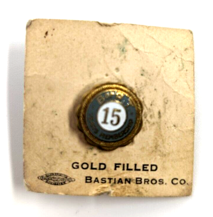 Vintage Collectible Lapel Pin B of RT 15 Years Membership 1/10 10K Gold Filled Enamel Pin Screw Back Bastian Bros Co Good Used/Vintage Condition. Some wear, stains... Moderate signs of age and use. No major damage. Please see the pictures for more description. * Color in pictures may appear slightly different from actual item.* When multiple items are in stock, one will be selected randomly and shipped. The conditions of the item may be slightly different from pictures. The used pinbacks may or may not have the original pin clutches. Feel free to contact me with any questions. Thank you for looking! We combine shipping when possible for US domestic orders. This item is eligible for a flat rate combined shipping discount.