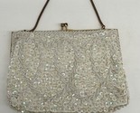 VTG Beaded Sequin Purse Ivory Evening Bag Gold Chain Strap Kisslock Handbag 8x5