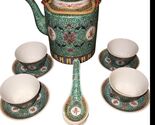 - VTG Chinese Tea Pot Large Hand Painted Collectible With 4Teacups, Saucers&Spoons