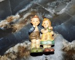 The VTG Goebel Hummel Figurine #214E "We Congratulate" is a collectible figurine from the 1960s, made in Germany. Standing at approximately 3.75 inches tall, this figurine features a congratulations theme with kids as the subject. It is part of the Hummel collection by Goebel, making it a sought-after decorative piece for collectors of vintage figurines. The figurine is a unique and charming addition to any collection, showcasing the craftsmanship and attention to detail typical of German collectibles.