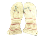 - VTG Hand Knit Kids Mittens Ivory Pink Stripe Embroidered Wool Repairable