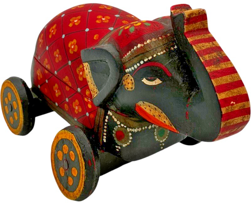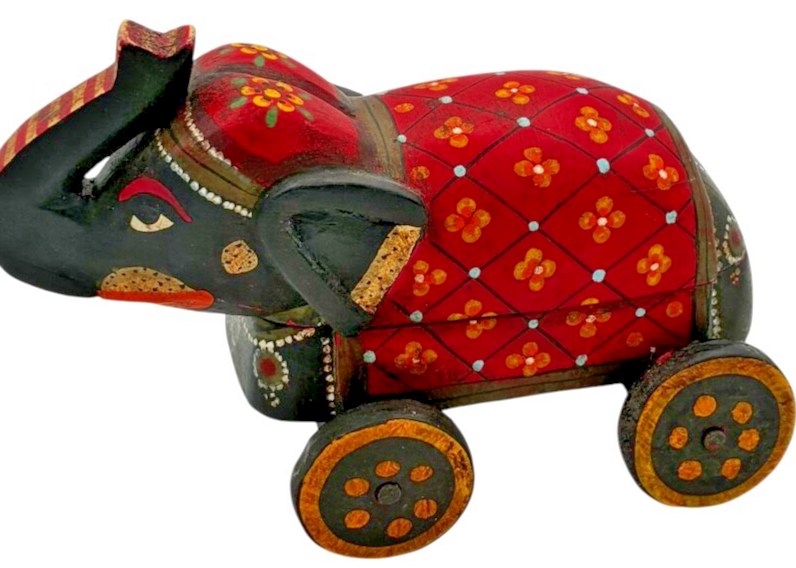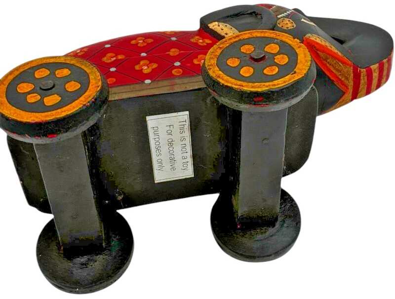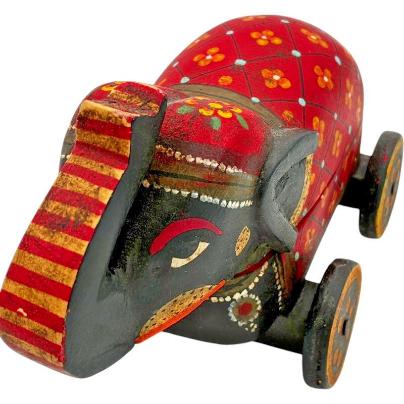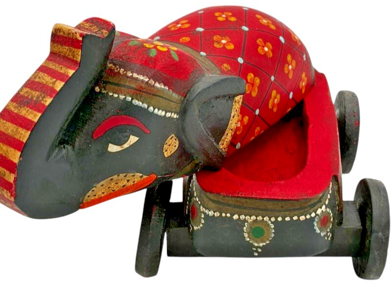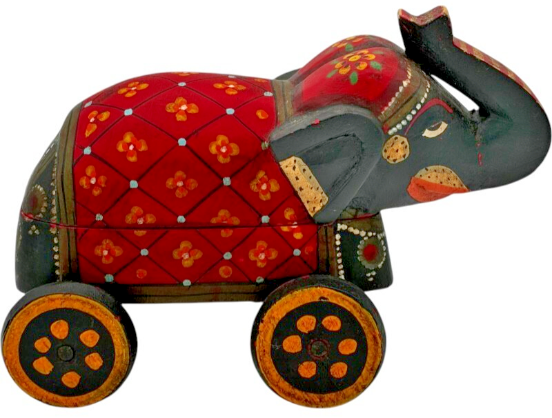 VTG Handmade Rolling Hinged Hand-Painted Wood Circus Elephant Trinket Box