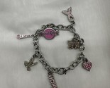 - VTG Hard Rock Charm Bracelet Pink Enamel & Rhinestones Ribbon Heart Butterfly ..