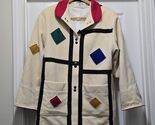 Excellent Condition Vintage International Scene Colorblock Geometric Mondrian Print Coat - Tag Size Women's 7/8. Actual measurements: 44" chest, 31.5" length. Fits like a M/L. This is a cool retro classic - it even has shoulder pads! ***Minimum wear! Very clean. It has 1 matching brass colored metal button that might not be original to the jacket, but it does look good! Nice contrast from the other black snaps! Please See Photos!*** SMOKE FREE HOME! SUPER FAST SHIPPING! #2
