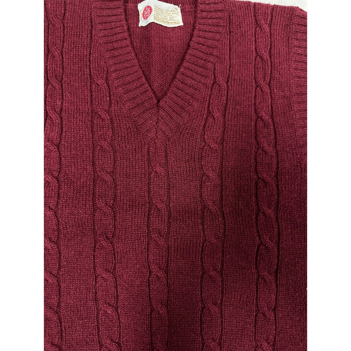 - VTG Kings Road Sears Burgundy Wool Cable Knit Sweater Vest Mens M Academia