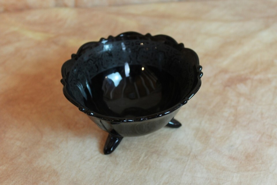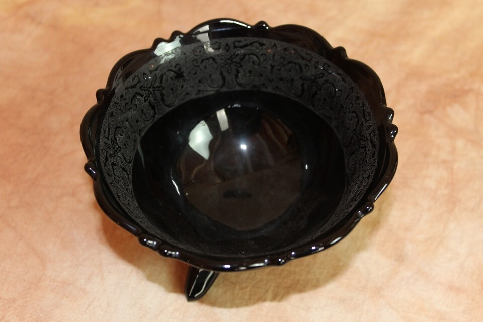Vintage L.E. Smith Black Candy Dish 3.25" Tall 5.5" Diameter Beautiful Interior Etching Excellent Condition, no chips or cracks See Photos For Details