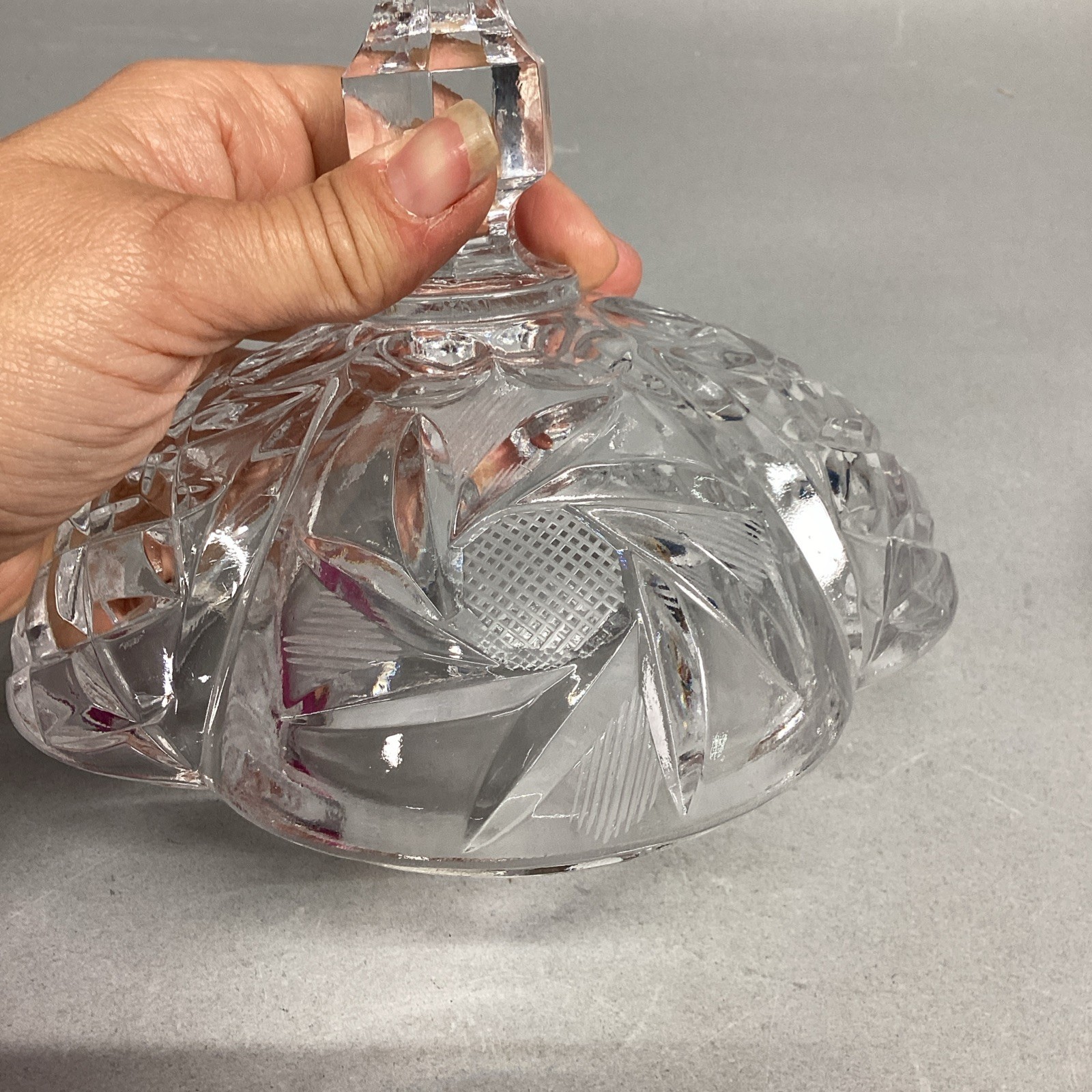 VTG Lead Cut Crystal Covered Candy Dish Spire Pinwheel Footed