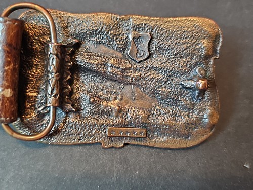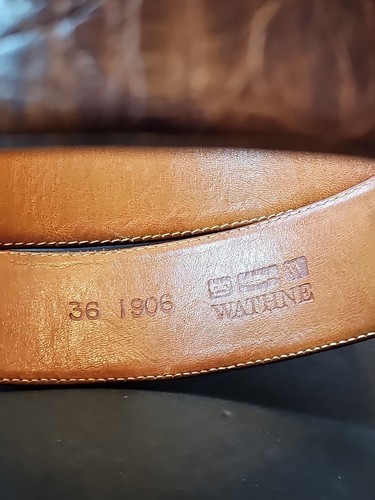 VTG Mens WATHNE Brown Leather Belt sz 36 with 5473 Pennsylvania Railroad Buckle