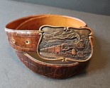Primary image for VTG Mens WATHNE Brown Leather Belt sz 36 with 5473 Pennsylvania Railroad Buckle