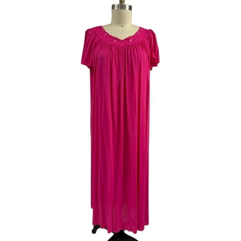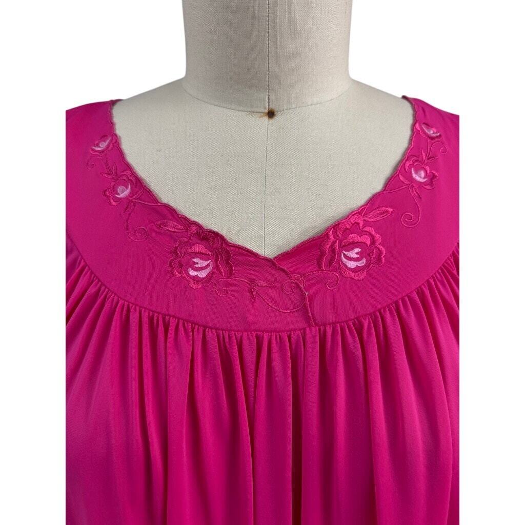 - VTG Miss Elaine L Fuchsia Pink Nylon Nightgown Embroidered Floral yoke NWOT