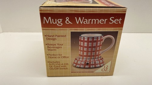 Mug Heated Warmer Plate Set 12oz NOS. Condition is New. Shipped with USPS Priority Mail.