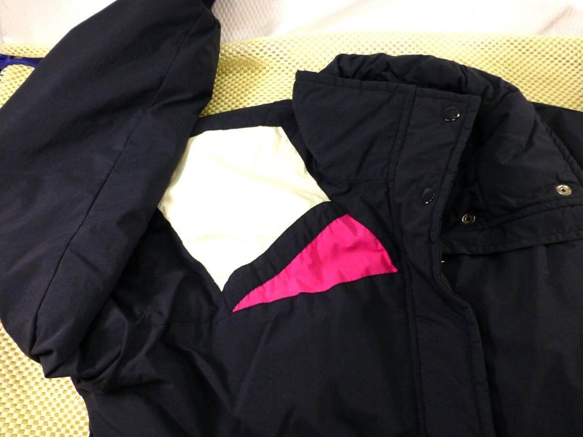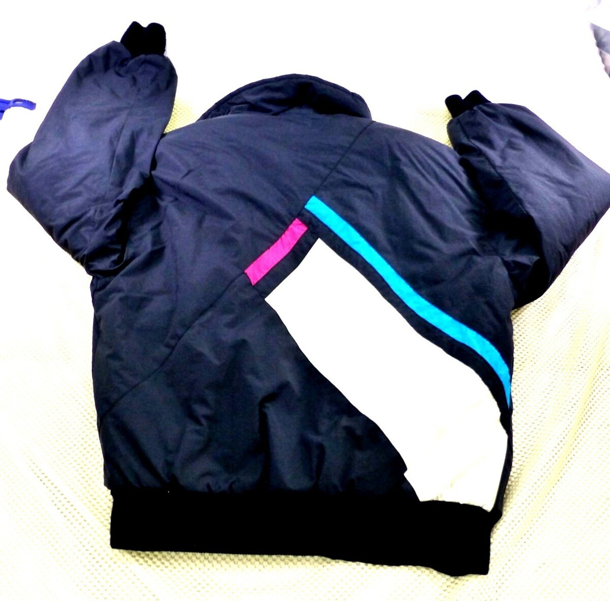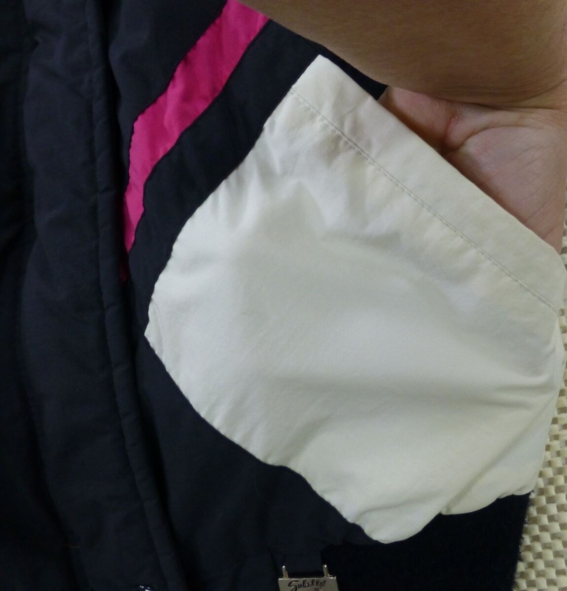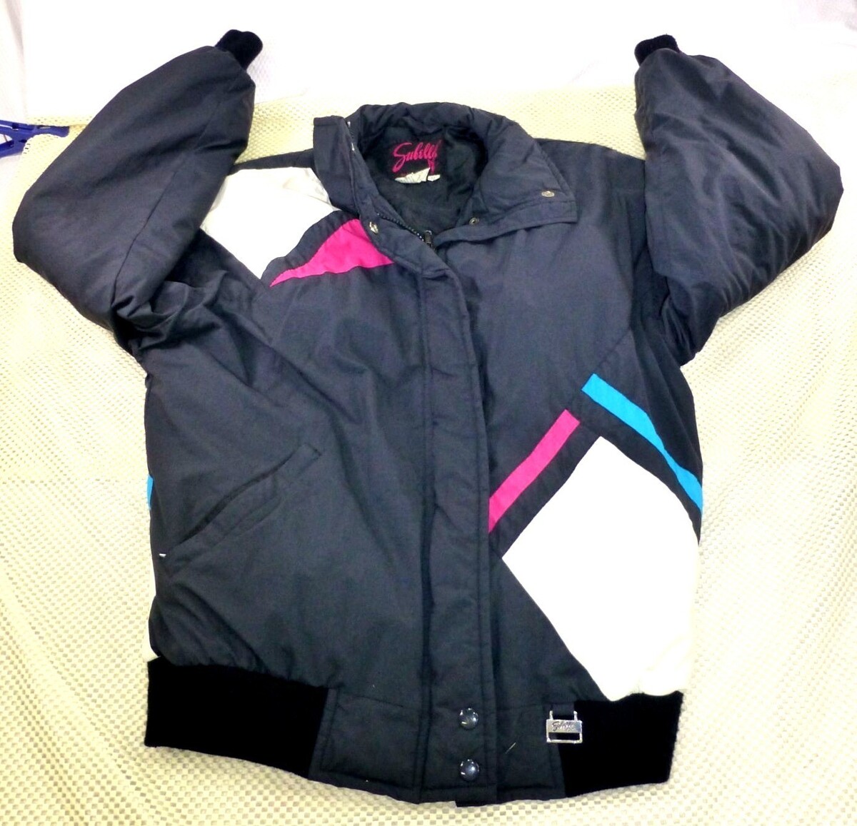 Bundled up in nostalgia, this Subili jacket is a time capsule of 90s athletic fashion. With its bold pink, blue, and white color blocking, it's like a visual playlist of decade-defining style. Practical warmth meets playful design in this nylon wonder.