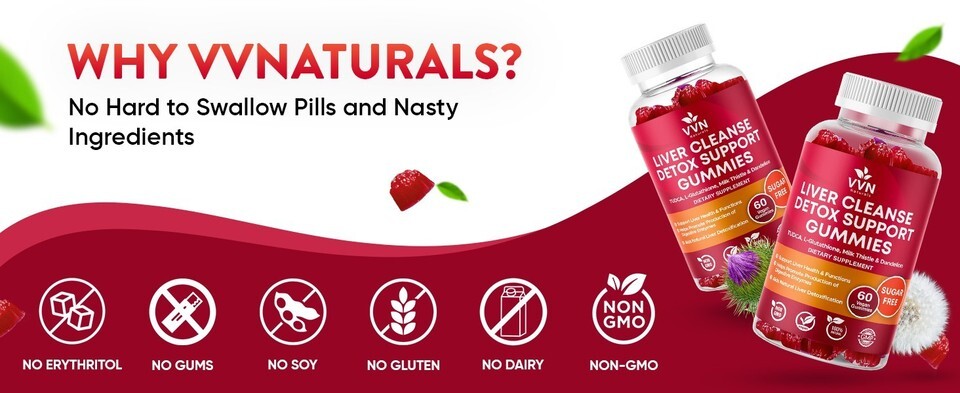 FATTY LIVER REPAIR: VVNaturals liver detox supplements feature a complete blend of liver cleanse detox repair fatty liver. Formulated to specifically target fatty liver concerns, these gummies aid in repairing liver damage caused by various factors, promoting overall liver function and well-being.