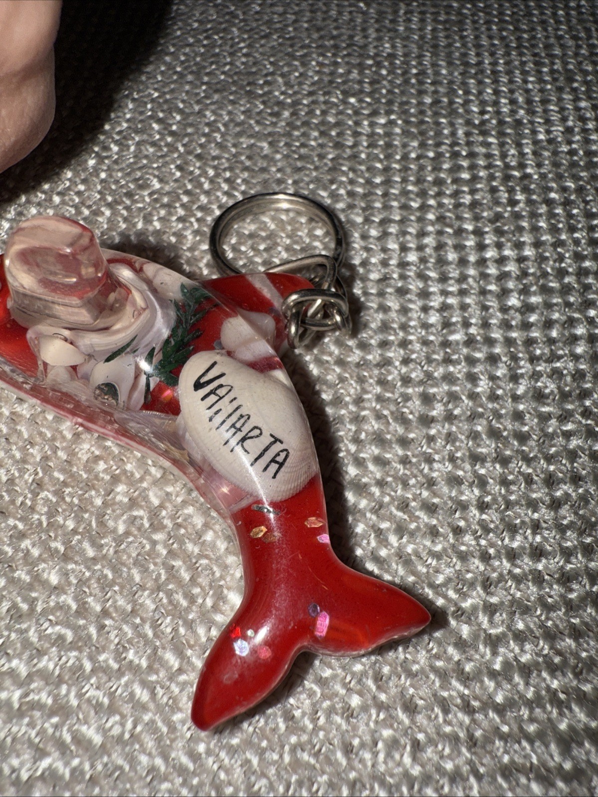 Vahtaria Polynesian Dolphin Keychain Zipper Pull Souvenir Sand Shell Rock Travel