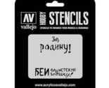 Vallejo Stencils - AFV Markings - Soviet Slogans WWII Num. 2. Translucent and flexible material, adapts easily to the surfaces of the model. Washable, easy to handle, the stencils facilitate the reproduction of all kind of hobby effects and textures. Fantasy and military dioramas, tanks, buildings, aircrafts, spaceships, Sci-Fi, these can now be enhanced with details for interesting and simple results.