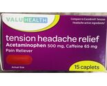 - ValuHealth-Tension Headache Relief-Acetaminophen 500mg/Caffeine 65mg:15 Caplets.