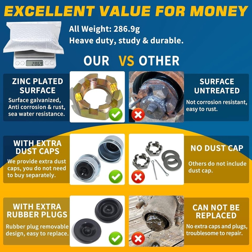 With our trailer axle nuts, enjoy the confidence that comes with high-quality parts tailored for your exacting standards. These kits not only provide you with an excellent value, but they also eliminate the worry of frequent repairs by keeping your trailer equipped and ready.