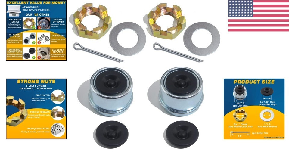 Enhance your repair toolkit by ordering our Value-Packed 2 Sets of 1'' Trailer Axle Nuts today and set forth on your journey with safety and reliability as a priority.