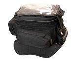 Zip off magnetic pad with back pack straps on bag Heavy duty textile material Expandable main compartment Rain cover included Removable large map pocket This heavy duty magnetic touring bag, with removable map window, gives you plenty of storage all in one bag. This bag features 4 external pockets to keep everything in one place. Allows easy carrying when not on bike with the long shoulder strap, the carry handle, you can even remove the zip off magnetic tank pad and use the included backpack straps. Equipped with a large clear map window, which allows easy reading on the go. Expandable main compartment for those extra items you just have to take on a road trip. Rain cover is included with this bag.