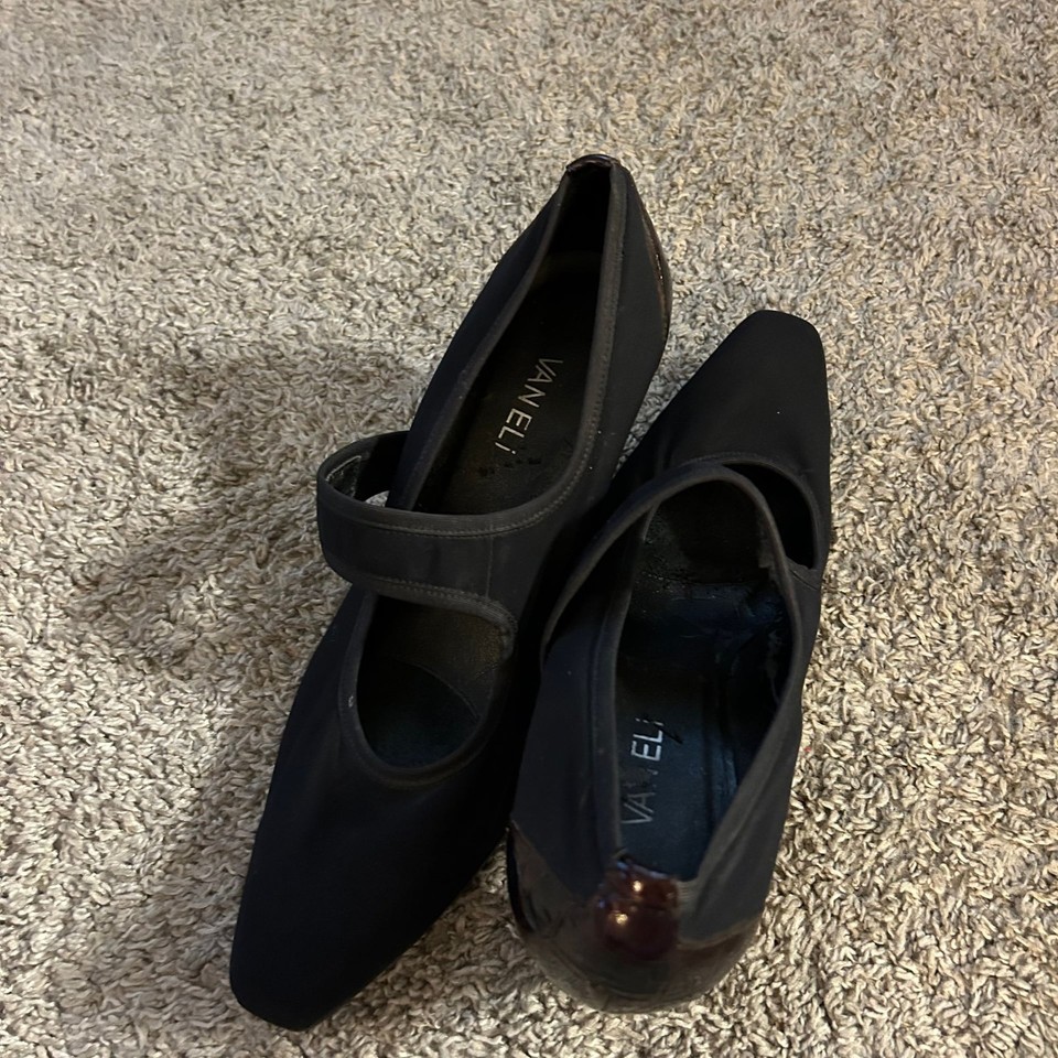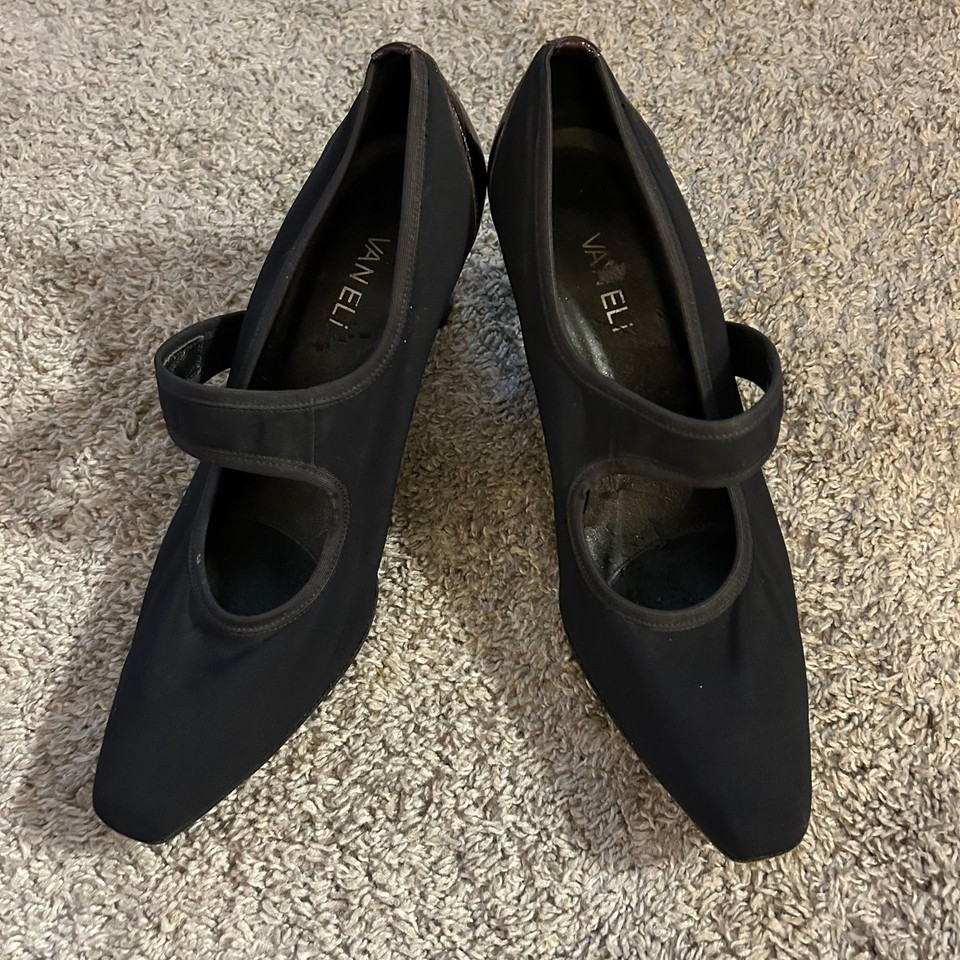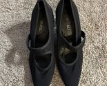 Step out in classic style with these Vaneli Black Suede Mary Jane Pumps. These elegant shoes feature a sophisticated Mary Jane strap design, offering both comfort and a timeless aesthetic. Crafted from black suede, they are versatile enough for office wear, special occasions, or adding a touch of polish to your everyday attire. The shoes are in used condition, showing some wear consistent with regular use, but remain a stylish and functional addition to any wardrobe.