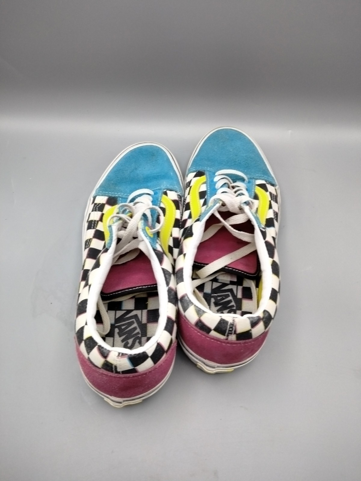 This pair of Vans Old Skool sneakers is a must-have for any casual shoe lover. The checkered design in blue and pink adds a unique touch to the classic low-top style. The lace-up closure ensures a comfortable fit, while the rubber outsole provides excellent traction for skateboarding or any other activity. These unisex adult shoes are available in US size 8.5 and UK size 7.5, with a medium shoe width. The upper material is made of premium suede, and the shoe shaft style is low-top. The Vans Old Skool sneakers are perfect for any season, whether it's winter, summer, fall, or spring.