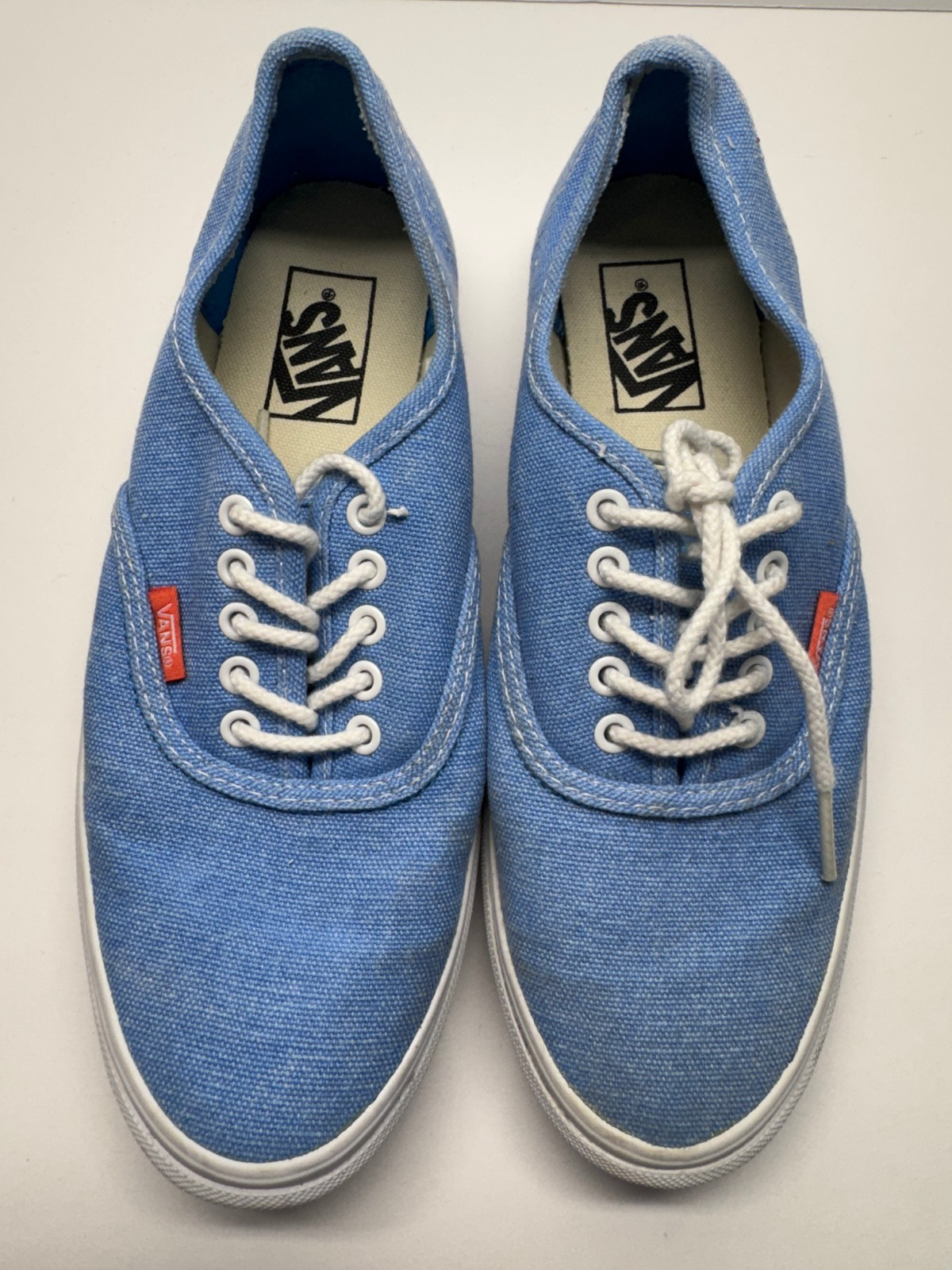 Vans Slim Light Blue Denim Canvas White Stitch M 7 W 8.5 Sneakers Shoes
