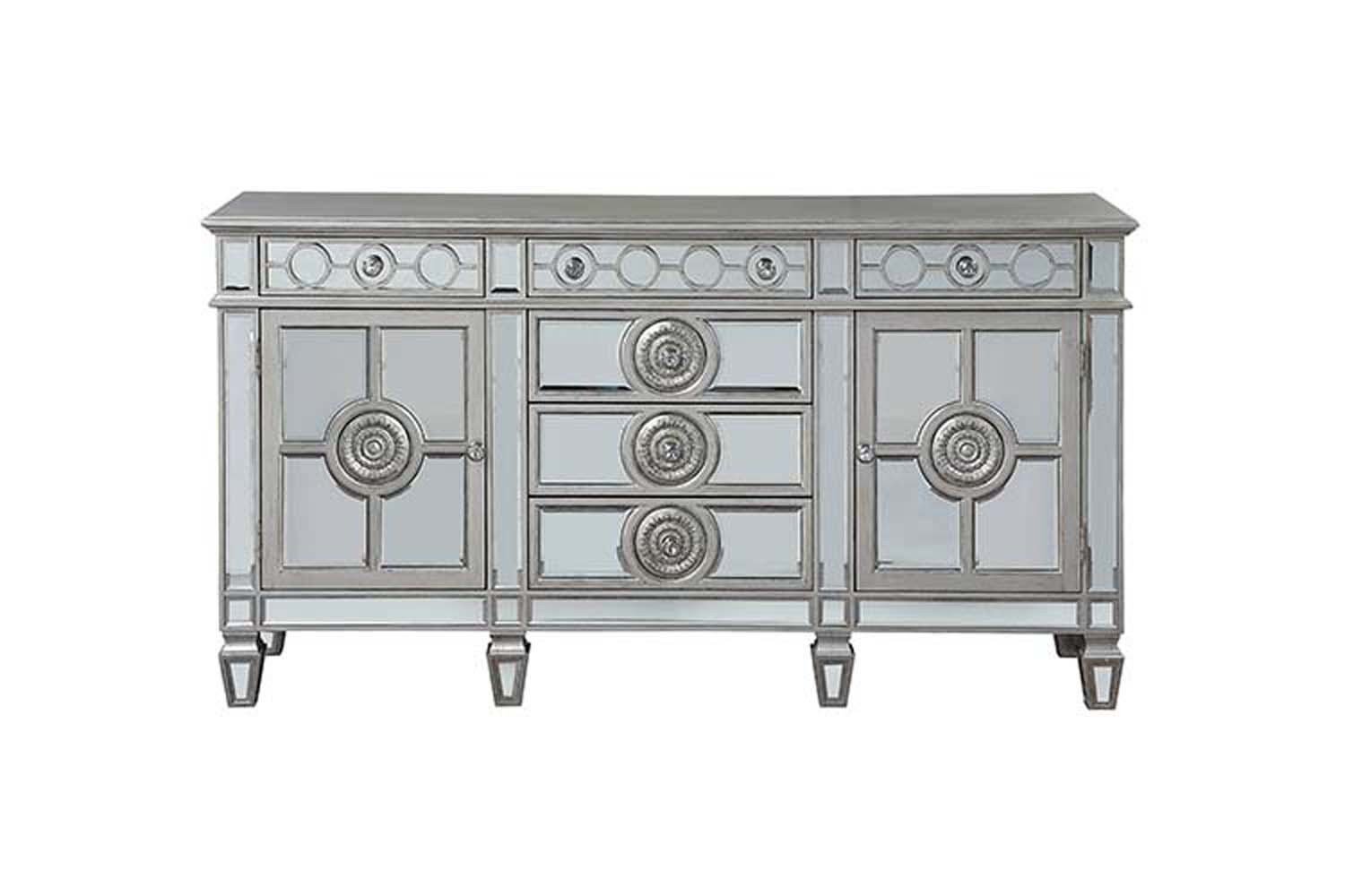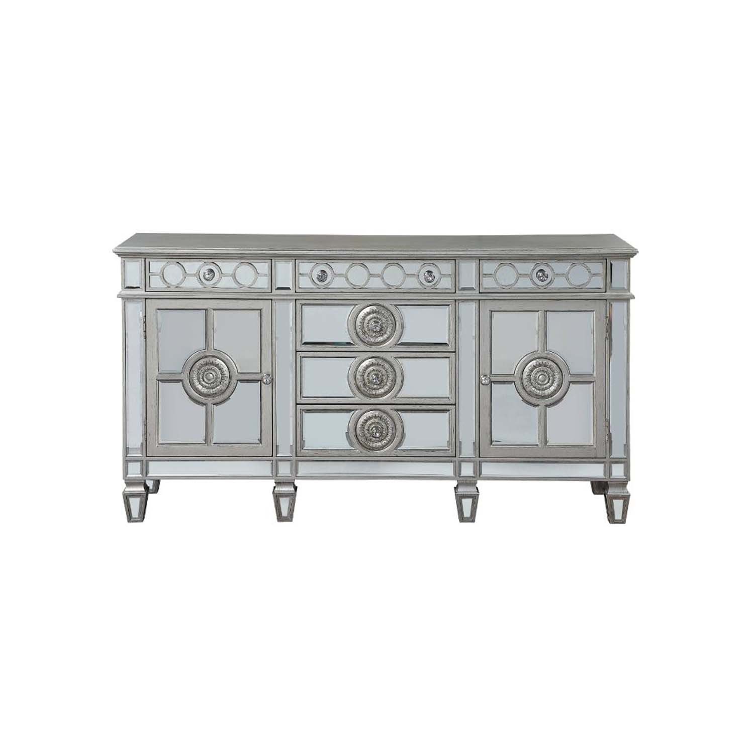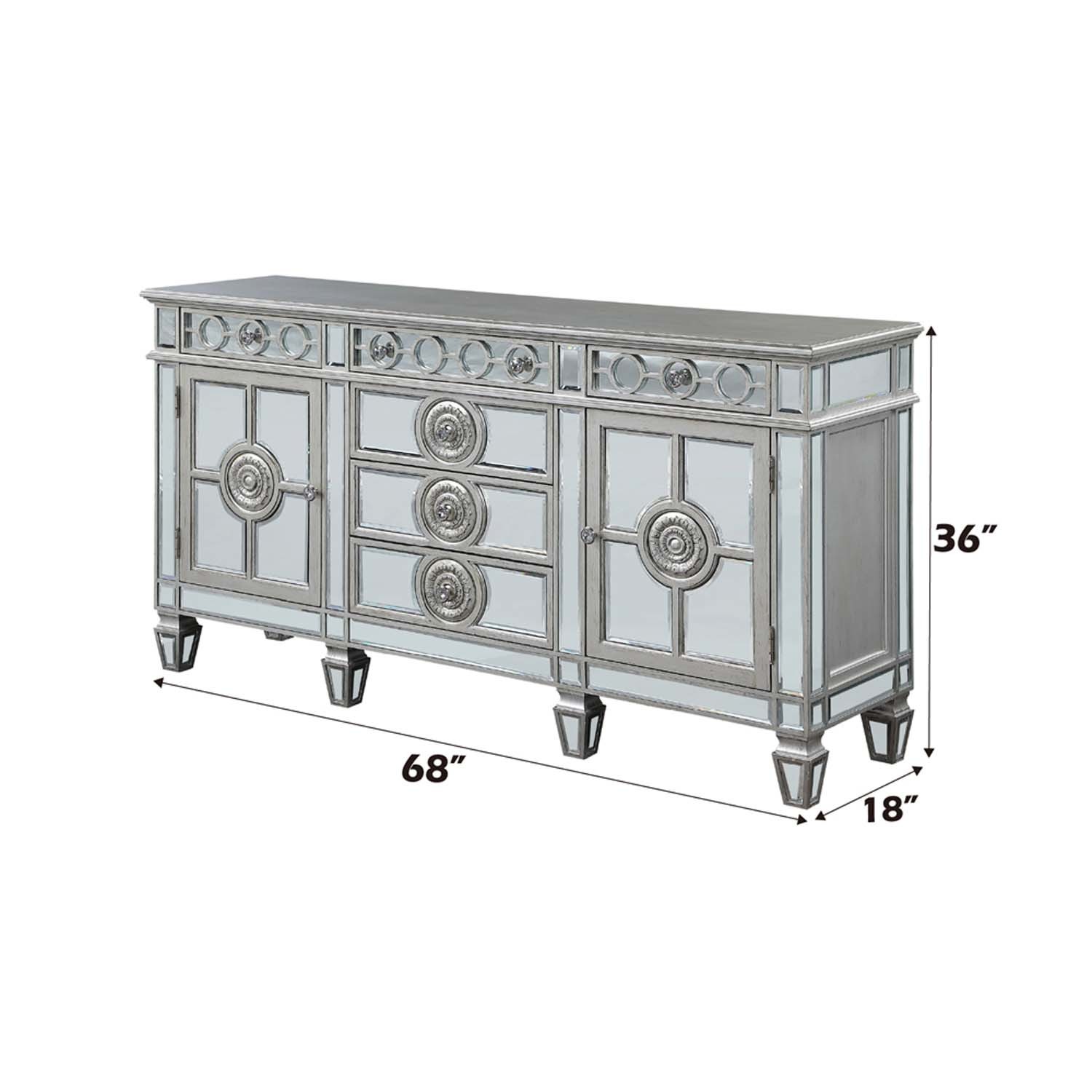 - Varian 68" Server, Mirrored & Antique Platinum Finish