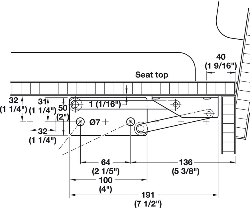 Springs for seat tops weighing 12 kg (26.4 lbs.) counterbalance the weight of the seat top and assist opening. Guarantee approximately 110 mm (4 5/16?) of forward movement
