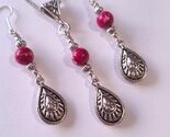 Victorian set silver-tone ornamented teardrop jewelry set with rare gemstones pink fuchsia Variscite earrings and necklace. Bohemian set jewelry set. Edwardian jewelry set. Boho jewelry set. Antique style jewelry set.