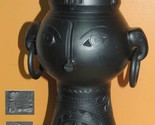 - Vase 9"matte Black clay woman crown earrings elephant ears deeply carved empress