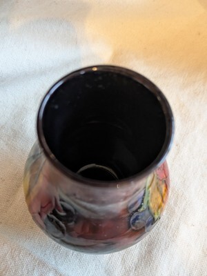 - Vaso Moorcroft Foglia Bacca Flambé 1940 HM Regina Impresso 10 Cm Alto