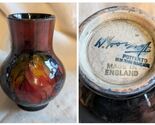 Vaso Moorcroft Foglia Bacca Flambé 1940 HM Regina Impresso 10 Cm Alto