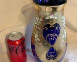 - Vaso Vintage In Cristallo Boemo Cobalto Blu Con Fiori In Oro 24kt Alto 10 In