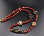 - Vecchio pumtek birmano asiatico con collana di perle veneziane a cuore bianco