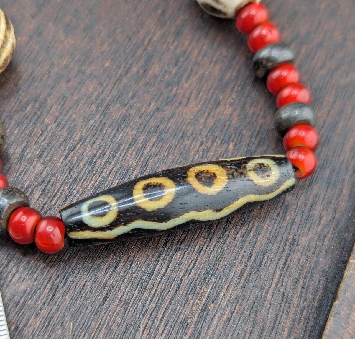 * BELLISSIMA perlina pumtek. Le perle Pumtek del Myanmar (Birmania) - dall'antica ai giorni nostri. Comprese le antiche perle Pyu/Samon Valley e altre perle cimelio trovate all'interno delle regioni delle tribù collinari. Con particolare enfasi sulle perline in pietra decorate.Le perle Pumtek sono realizzate in questo legno pietrificato birmano. Sono anche conosciute come "perline di fulmini sepolte".
