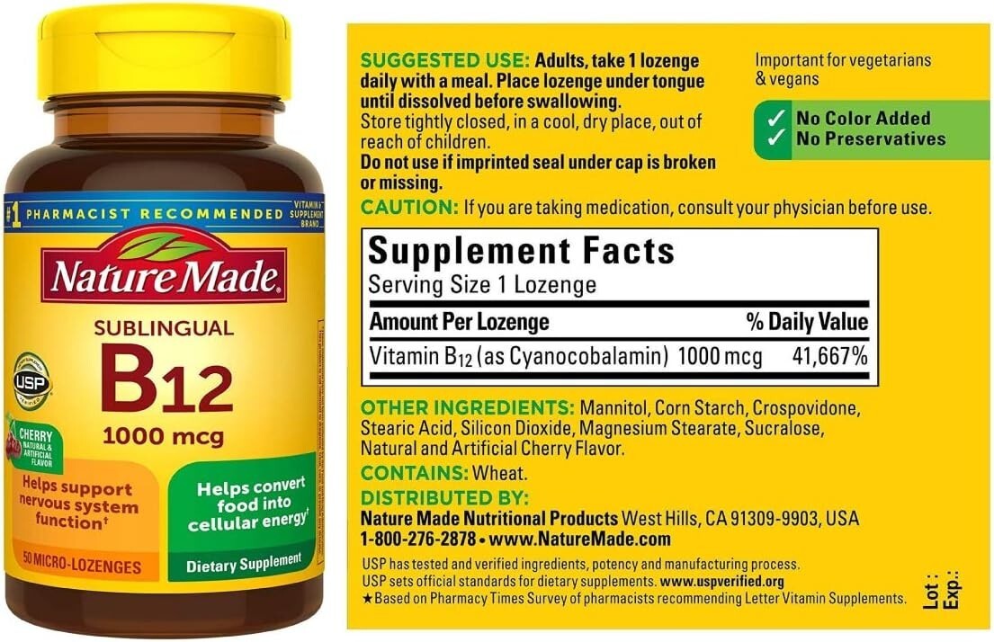 - Vegetarian Cherry B-12 Lozenges 1000 mcg - 50 Micro-Lozenges Pack of 2