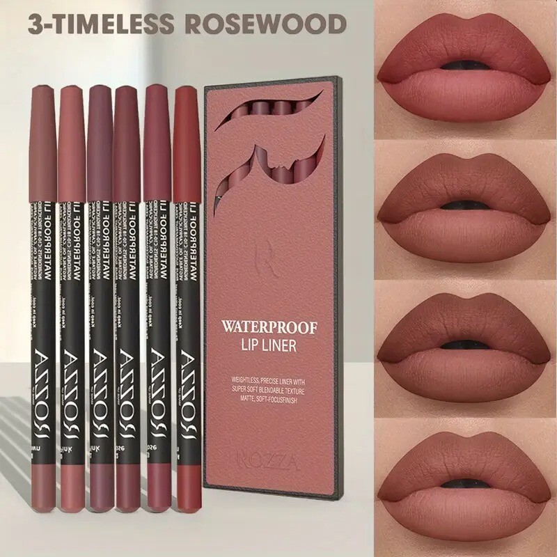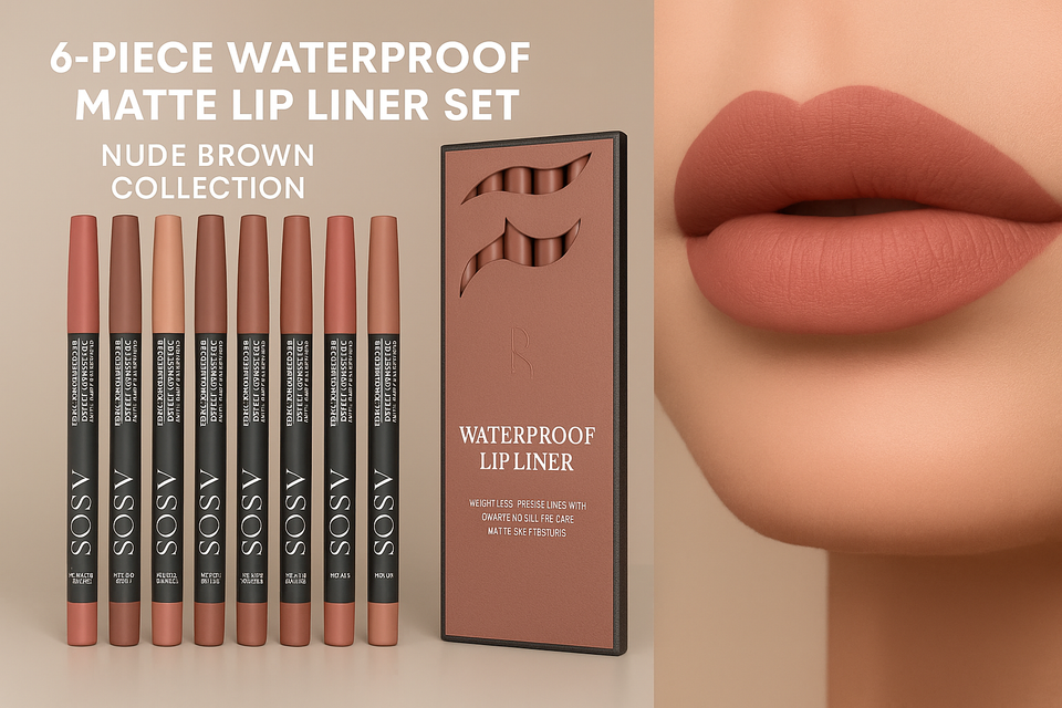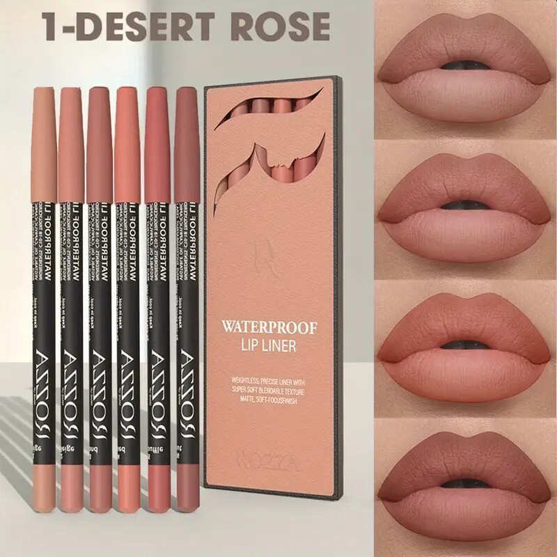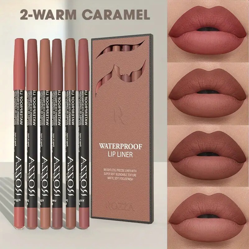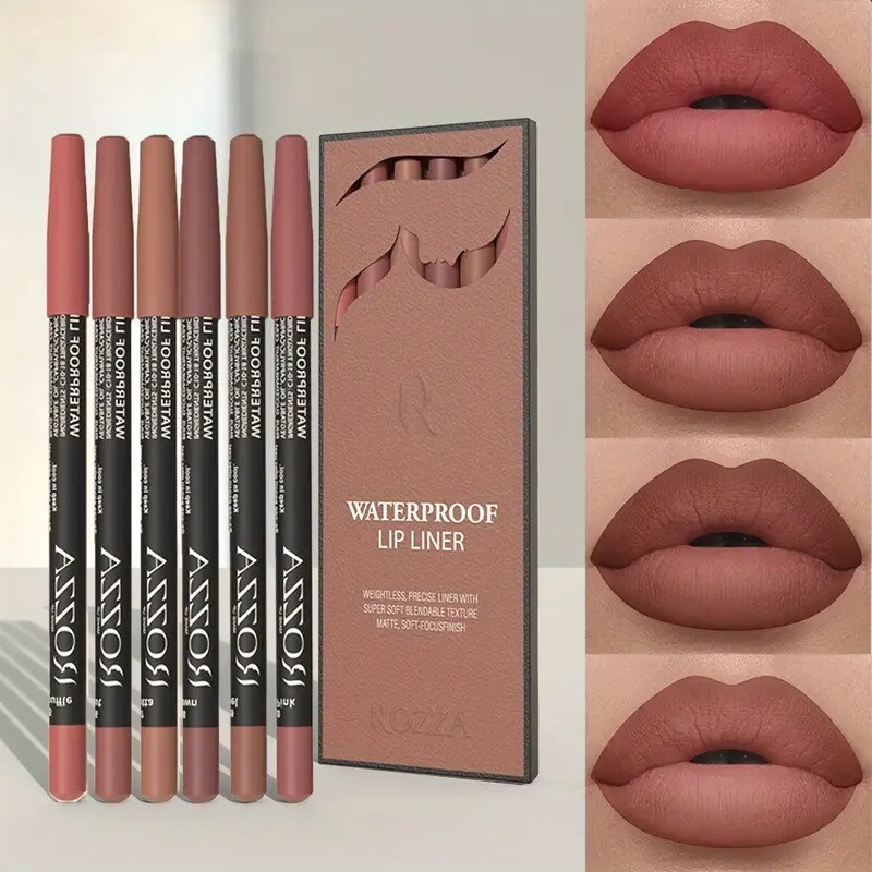 6pcs Waterproof Matte Lip Liner Set ? Long Lasting Nude Brown Collection